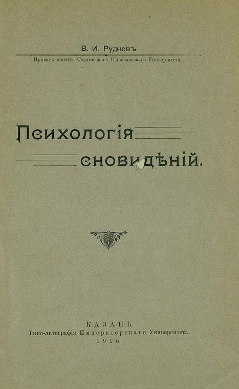 автор: Руднев В.И. название: Психология сновидений год: 1915 формат: pdf размер: 6,22 mb ![]() | |